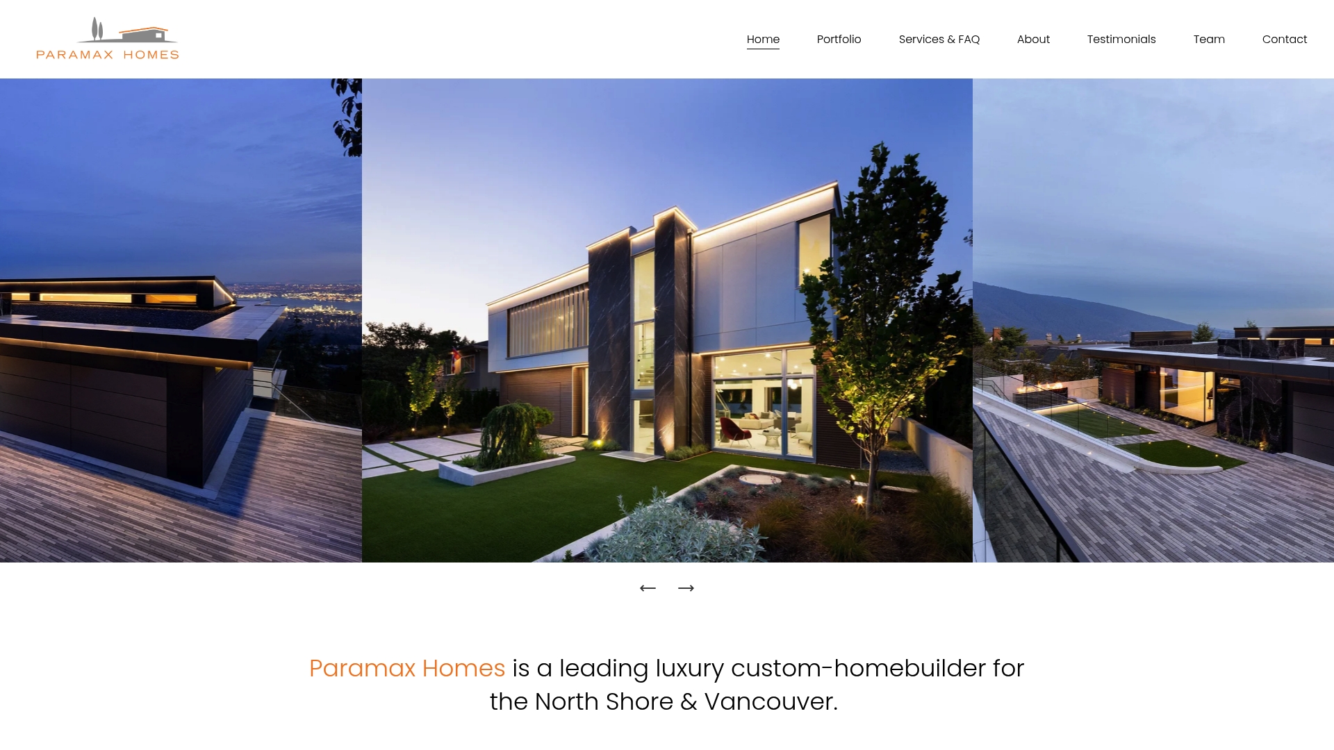 Paramax Homes is a Vancouver and North Shore luxury custom homebuilder that focuses on energy efficient and environmentally responsible construction. They offer standards like LEED, Net Zero Ready, and Passive House and present an award winning portfolio that signals high craftsmanship.