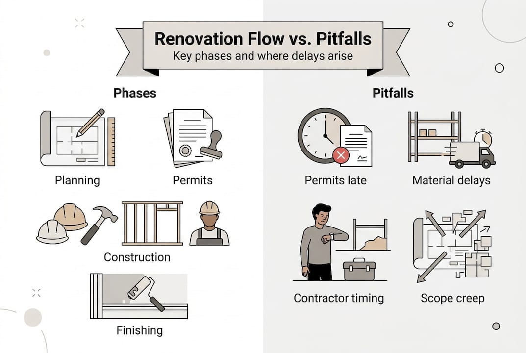 Delays typically start in the planning phase and compound from there. A permit that takes three extra weeks pushes every subsequent trade back. Contractors who are already booked may not be available when you're finally ready, which creates scheduling gaps that stretch your timeline further.